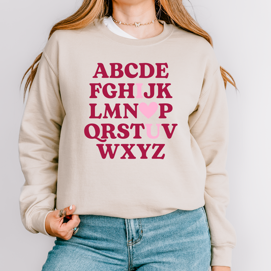 Alphabet I ❤️ You Teacher Valentine's Day Crewneck Sweatshirt