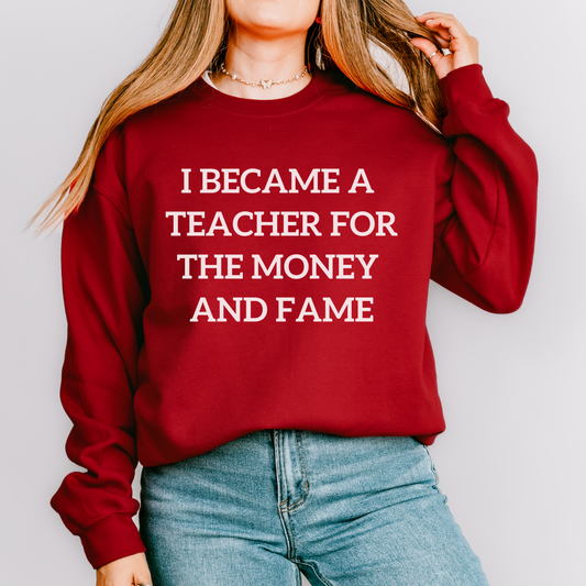I Became a Teacher For the Money and Fame Teacher Crewneck Sweatshirt