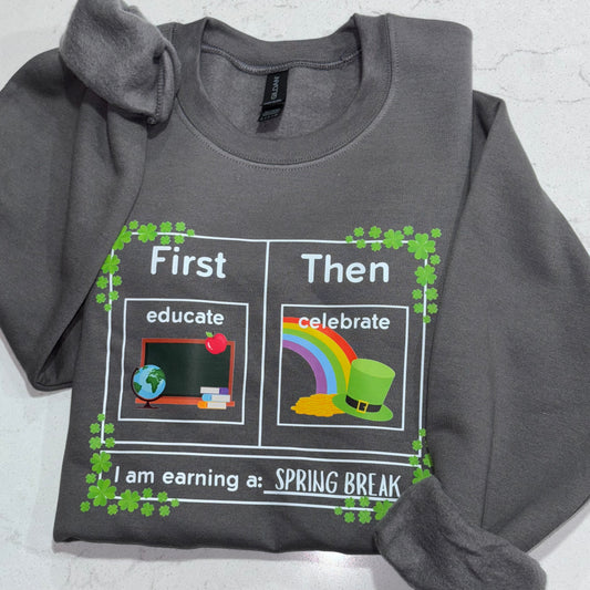 First Educate Then Celebrate St. Patrick's Day Teacher Crewneck Sweatshirt