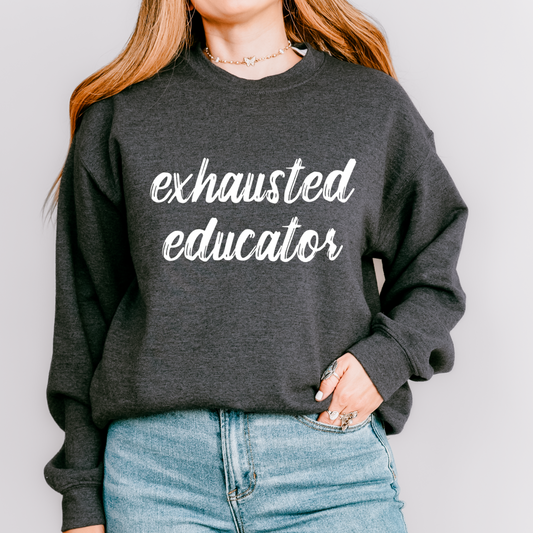 Exhausted Educator Teacher Crewneck Sweatshirt
