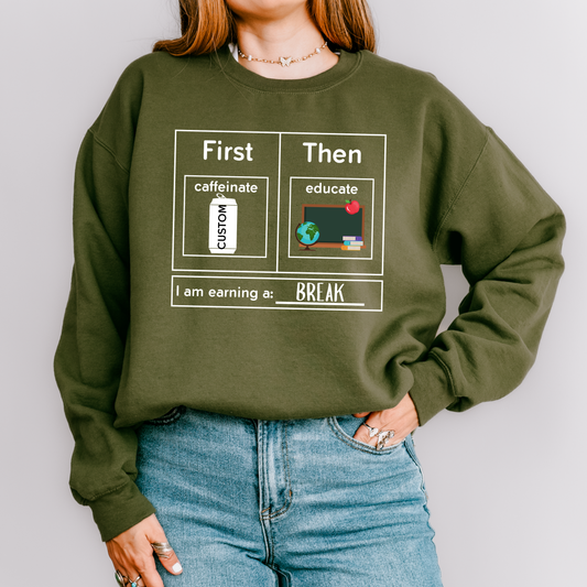 Custom First Caffeinate Then Educate Teacher Sweatshirt