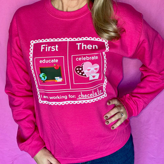 First Educate Then Celebrate Valentine's Day Teacher Crewneck Sweatshirt