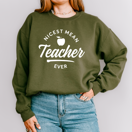 Nicest Mean Teacher Crewneck Sweatshirt