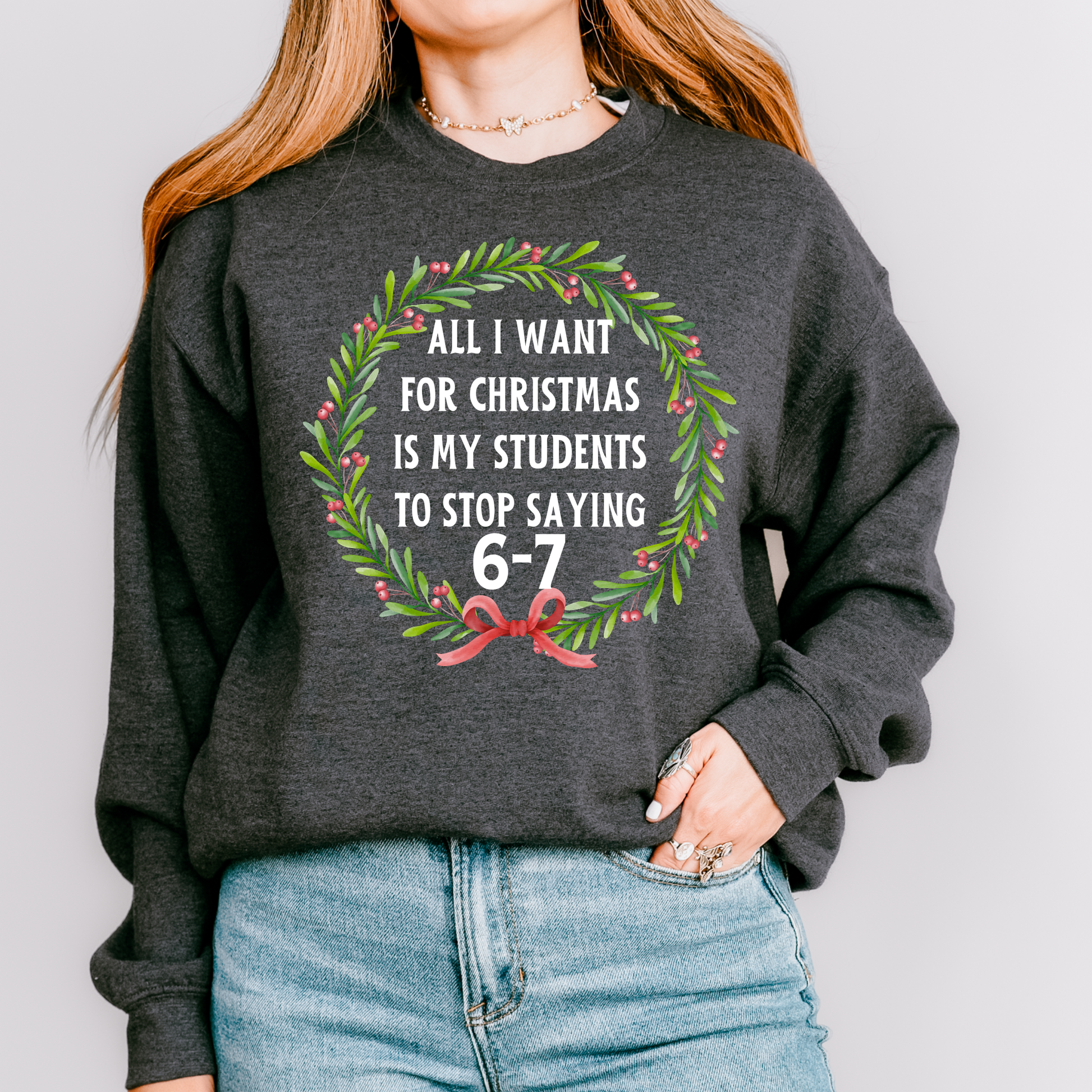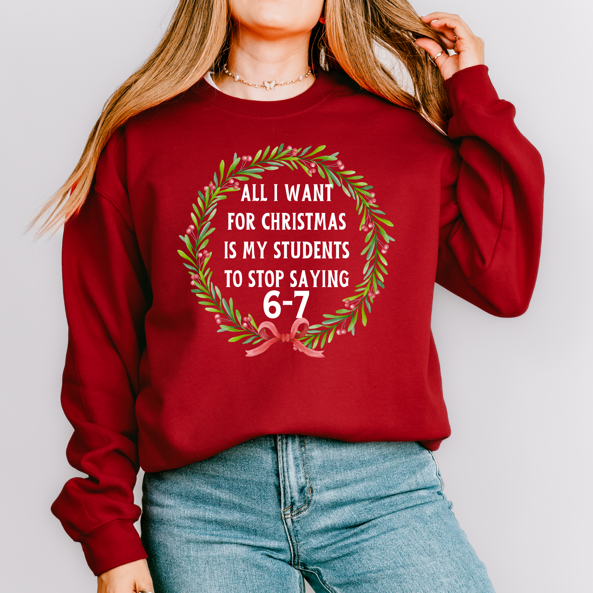All I Want for Christmas Is My Students to Stop Saying 6-7 Sweatshirt – Funny Teacher Holiday Sweater